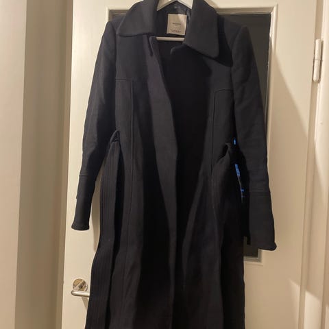 Myydään kaunis ja ryhdikäs Mangon villakangastakki koossa S. Hyvä kunto, aitoa villaa. Kainalo pienesti purkautunut, mutta ei haittaa käyttöä tai näy käytössä (hinta sen mukainen).