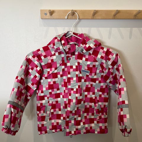 -Lassie 2-osainen toppapuku 110 . Takki siisti, housujen polvessa pieni reikä