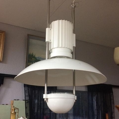 "Airport mini" design valaisin, 2kpl. Lamput on alunperin suunniteltu Münchenin lentokentälle ja ovat melko harvinaiset kotitalouskäytössä. Materiaali metallia, korkeus 80 cm, halkaisija 50 cm. Vähäisiä naarmuja. Oranssit teipit kuvissa ovat pitäneet lappukotelon kantta kiinni varastossa, mutta ne kuuluu ottaa pois kun lamppu otetaan käyttöön. Hintapyyntö 220€/kpl tai 400€ molemmat.