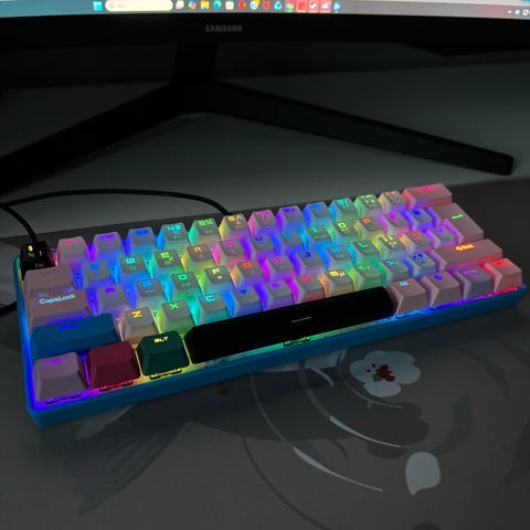 Noin vuoden vanha langallinen pelinäppäimistö (valkoiset taustavalot).