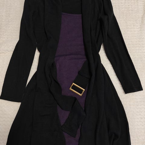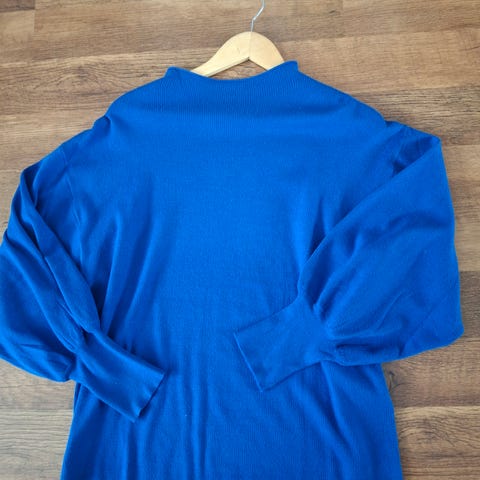 Kaunis villapusero kauluksella, koko L, Olka-helma 60 cm ja kainalosta kainaloon 60 cm.