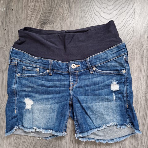 Myydään Noppies-merkkiset joustavat odotusajan farkkushortsit koossa 30, joka vastaa reilua M/L- kokoa.