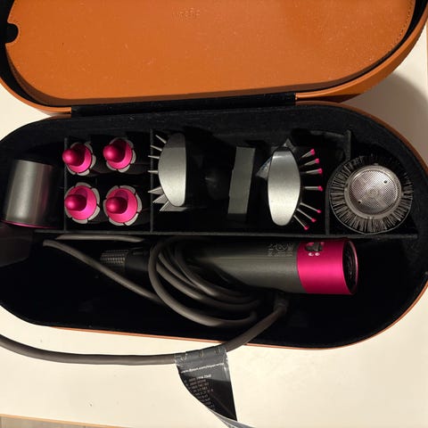 Dyson Airwrap Complete muotoilulaite. Ostettu gigantista 11/2021 ja sen jälkeen ollut käytössä alle 10 kertaa. Siistissä kunnossa, kaikki osat tallessa ja osa muotoilupäistä kokeilemattomia. Sopii hyvin vaikka joululahjaksi!