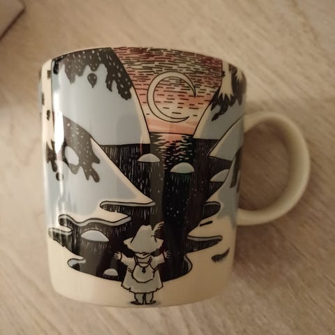 Käyttämätön Arabia Muuminpäivän muki vuodelta 2021. Näitä on kaksi eli halutessaan saa ostaa molemmat yhteishintaan 70 euroa