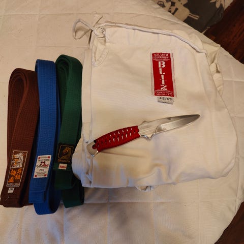 Käytetty, mutta pesty. Vyötä ei ole enää.