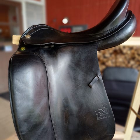 Hyvä kuntoinen musta koulusatula Prestige hippos dressage by Appaloosa, 17”, leveys 33 (vastaa MW). Nahka ja vastinhihnat hyvä kuntoisia, pesty ja rasvattu.