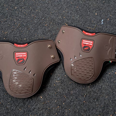 Vain kerran kokeillut ja sen jälkeen pestyt Zandonan lyhyet takajalansuojat tarrakiinnityksellä. Erittäin pehmeä karvapehmuste, koko M (sopii isollekin hevoselle) ja väri ruskea.