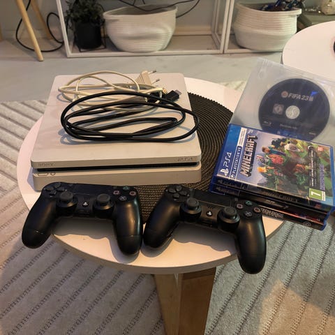 PS4 Slim 500GB + 2 ohjainta + 6 peliä + kuulokkeet+näyttö – valmis setti!