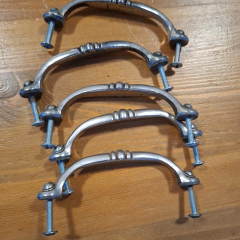 Myydään metalliset vetimet/kahvat. Vetimen leveys 137 korkeus 30mm Reikäjako 96mm. Ruuvit kaikissa mukana.