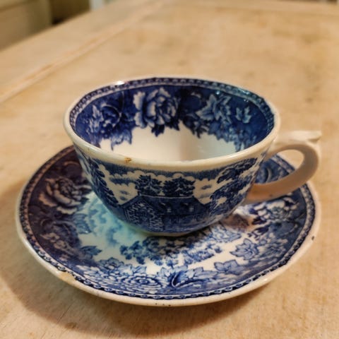 Maisema kahvikuppi, vetoisuus 2 dl. Halkaisija 9,5 cm. Ehjä mutta pieniä lasituksen alla olevia jälkiä. Hinta 7 euroa.