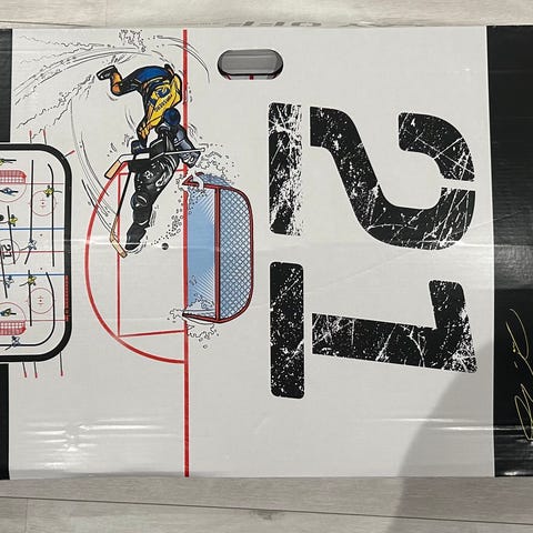 Pöytäjääkiekko, jossa on jääkiekkokaukalo, pelaajahahmot ja kiekko. Kaikki muuten kunnossa vain Ruotsin puoleinen maalivahti täytyy liimata paikoilleen. Sopii sisäpelikäyttöön ja viihteeksi eri-ikäisille käyttäjille.