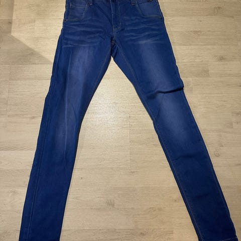 Name it Farkut lasten koko 164, sininen väri, unisex-malli. Materiaali ei ole erikseen mainittu, mutta kuvien perusteella farkkutyyppinen kangas. Takana kaksi taskua, vyötäröllä joustava osa mukavuutta varten.