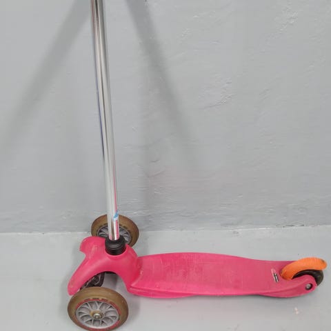 The handlebar is adjustable: 49-67 cm. Max weight: 50 kg. Brake on the rear wheel.
