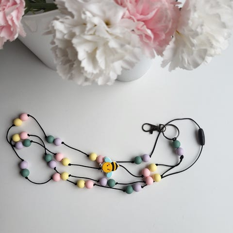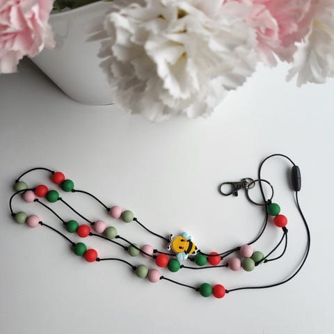 Avainkaulanauha esimerkiksi hoitajalle. Vetäessä avautuva turvalukko.