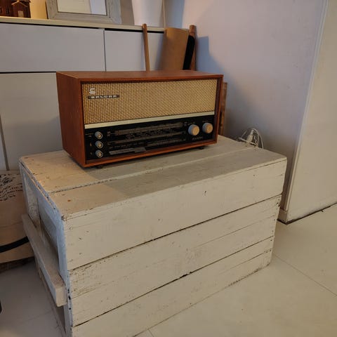 Myydään Salora Minor -radio, valmistettu Suomessa. Tyylikäs retrodesign puukuorella ja metallisella teleskooppiantennilla.