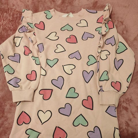 Hyväkuntoimem vaatepaketti, koko 134/140cm. Sisältää käyttämättömän h&m mekon ja kissapaidan. Olkaimettoman topin ja keltaisen (vähän haalistumaa värissä) trikoopaidan, collegehousut ja legginsit.
