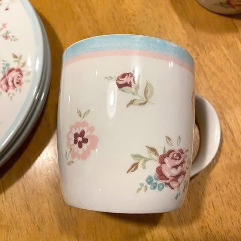 Kukka-astiasto, joka sisältää erikokoisia posliinisia lautasia, kulhoja, teekannun ja sokerikon. Astiastossa on kukkakuvioita ja kultareunukset. Sopii kattaukseen ja tarjoiluun.