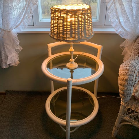 Rottinkipöytä lasitasolla