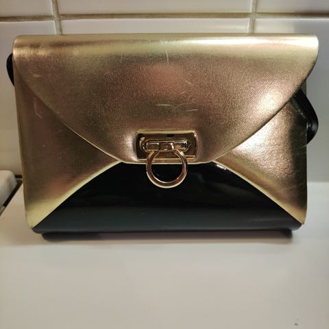 Pieni ruutu laukku siisti, mutta hihnan kiinnike mennyt rikki, mutta on kiinnitetty niin että voi käyttää. Kysy kuvaa.