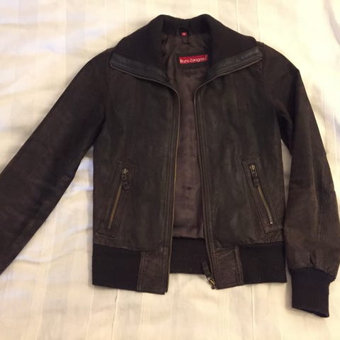 Maze merkkinen vain vähän käytetty ihana nahkatakki. Ohut vuori, tarkenee pikku pakkasella. Koko L, mutta pientä mitoitusta. Taskut vetoketjulla. Ei povaria.