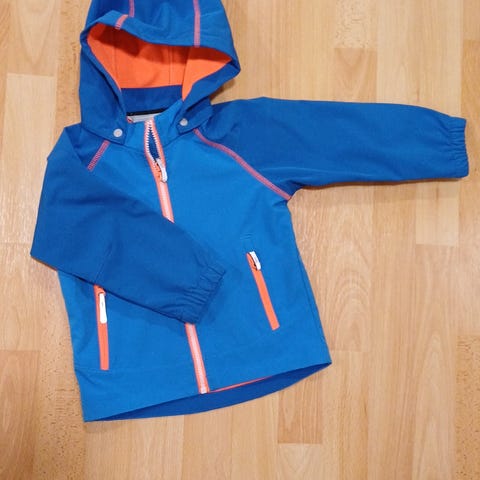 Lasten softshell takki kokomerkintä 98-104. Kohtuu siistikuntoinen, muutamia jälkiä näkyy olevan.