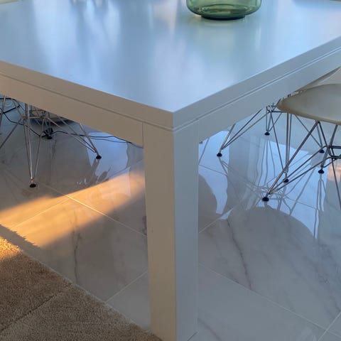 Kuvan valkoinen pöytä (140cm x 140cm) MDF levystä.