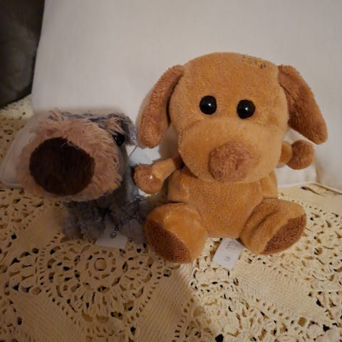 Vauvan pehmolelut, Koira ja jääkarhu. Sopii pieneen käteen. Hyvässä kunnossa ja puhtaat.