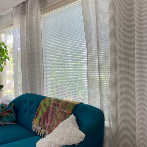 Lastenhuoneen kirahviverhot. Ylhäällä rypytysnauha. Puuvillaa. Koko noin pituus 243cm x 136cm. 2kpl 15e