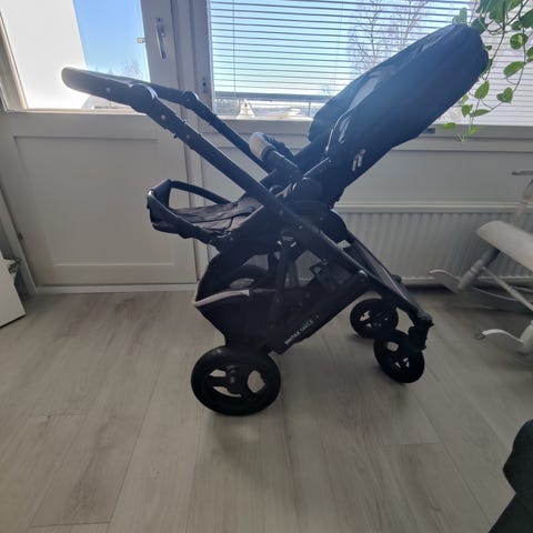 Britax Mutsy vaunuyhdistelmä. Kaukalon saa kivasti pyörien päälle suoraan autosta mikä on kivaa kun vauvan kanssa käy kaupassa. Kaukalossa myös vauvapehmuste ja on kolaroimaton.