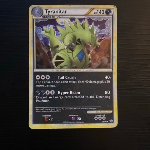 Larvitar, Pupitar & Tyranitar Pokemon Expedition sarjasta (2002). Tyranitar on reverse holo.