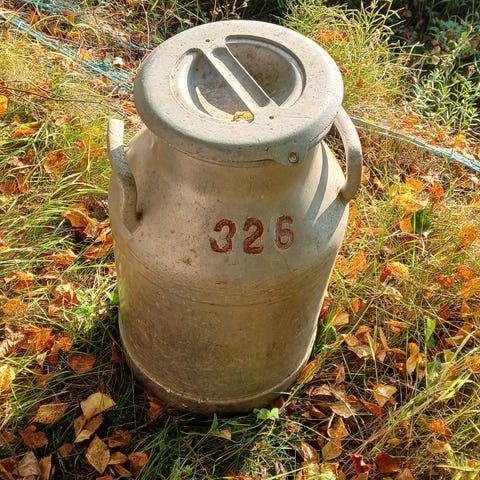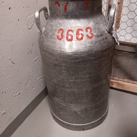 20 litrainen maitotonkka 1950-luvulta. Ehjä.
