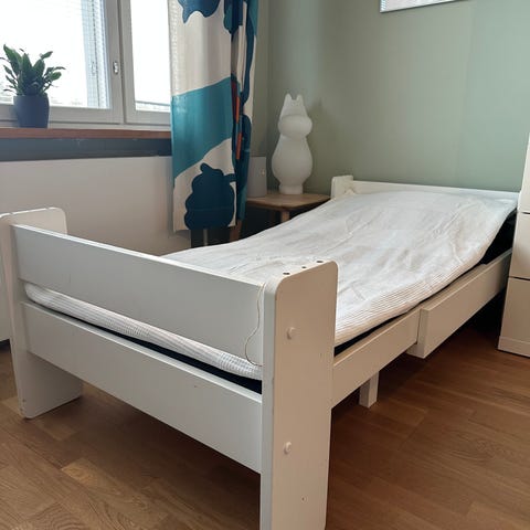 Kehto ei ole Unipuu-merkkiä. Se on valmistettu tukevasta markiisikankaasta puuvahvistein. Mitat: pituus 80cm, leveys 45cm ja laidan korkeus 30cm. Sisältää vaahtomuovipatjan.