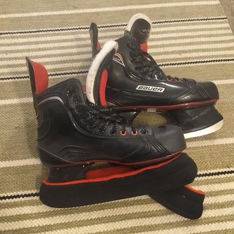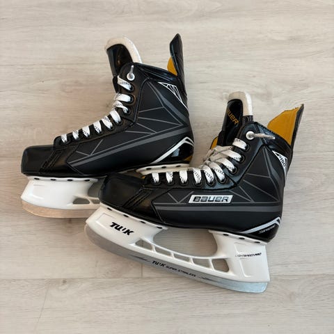 Bauer Supreme One80 luistimet. Paljon käytetyt ja kulumaa joka puolella, edelleen kuitenkin käyttökelpoiset! Terää on jäljellä noin 11 mm, joka alkaa olemaan aika vähän, vielä kuitenkin varsin luisteltavat ja on teroitusvaraakin!