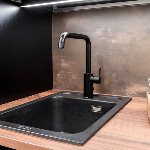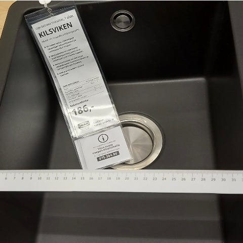 Valkoinen komposiitti allas keittiöön, huullosasennus