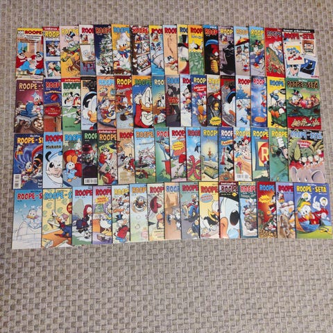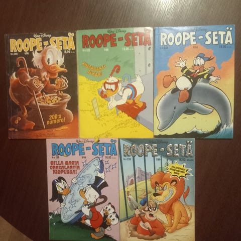 Myydään 84kpl Roope-Setiä ja muutama ylimääräinen Roopesetä kylkiäisiksi. Valitettavasti takakannesta leikattu osoitetieto pois.
