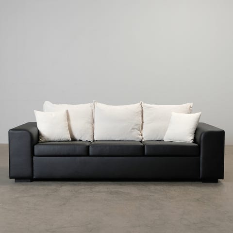 Ajaton ja mukava 2-istuttava sohva mustalla tekonahkaverhoilulla.