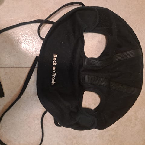 Hyväkuntoinen niskasuoja hevoselle. Taakse ommeltu lisätarrat jotta saa esim. riimuun kiinni.