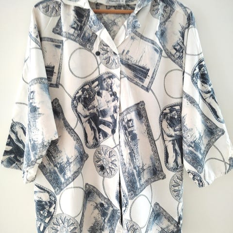 Leveys kainalosta kainaloon noin 50 cm. Pituus niskasta helmaan noin 66 cm. Pesulappu irrotettu, materiaali muistaakseni puuvillaa. Niskassa lappu, jossa lukee "earth positive climate control".