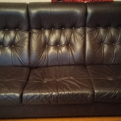 Myydään aitoa nahkaa oleva kahden istuttava sohva. Mitat korkeus 90cm, leveys 145cm, syvyys 80cm