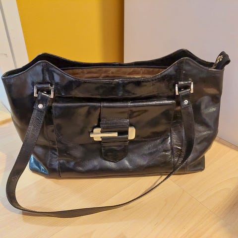 Myydään uusi the monten musta nahkainen käsilaukku. Irrotettava ja säädettävä olkahihna n 156 cm. Hopean väriset yksityiskohdat. Mitat n 38 cm x 23 cm x 10 cm. Ei toridiiliä.
