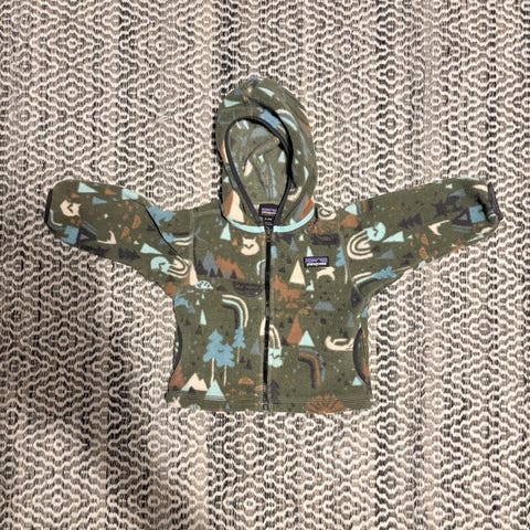 Patagonia takki on elämää nähnyt, mutta vetoketju uusittu Patagonian oma Worn Wear ohjelman kautta viime vuonna. Ei tahroja mutta jotain pientä kulumia ja millimetri reikiä löytyy.
