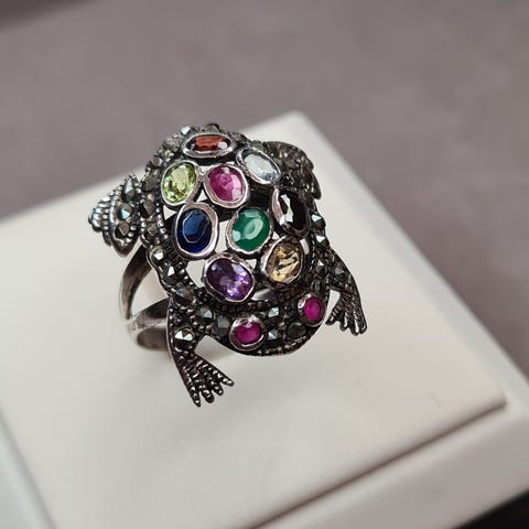 Sormuksen koko 17,5mm. Sormuksen ympärysmitta p7xl13xk25mm. Paino 4g. Kirjelähetys 3€.
