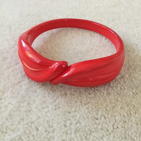 Metallinen hopeanvärinen rannerengas, rusettikoriste.