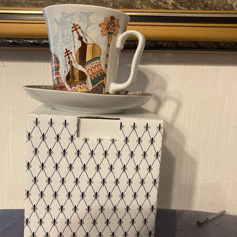 Lomonosov uusi kuppi ja lautanen , metsästys aiheinen kork. 9,5 cm