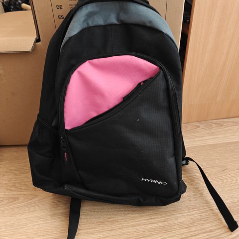 Myydään käyttämätön musta reppu, jossa säädettävät olkahihnat. Materiaalit: 0,45 mm paksua tarpaulinia, pvc-pinnoitettu. Etupuolella vetoketjutasku.