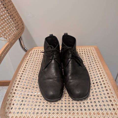 Vähälle käytölle jääneet todella laadukkaat Goodyear welted (reunospohjaiset) Myrqvist Gyllsjö Chukka nilkkurit. Tummanruskea mokka, koko 43. Kengissä tukeva kumipohja. Sopivat käytettäväksi erilaisissa olosuhteissa ja tarkoituksiin. Nouto Helsingin Lauttasaaresta tai keskustasta, tai postitus