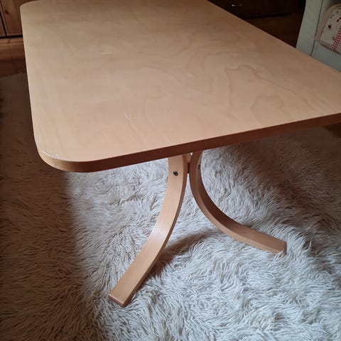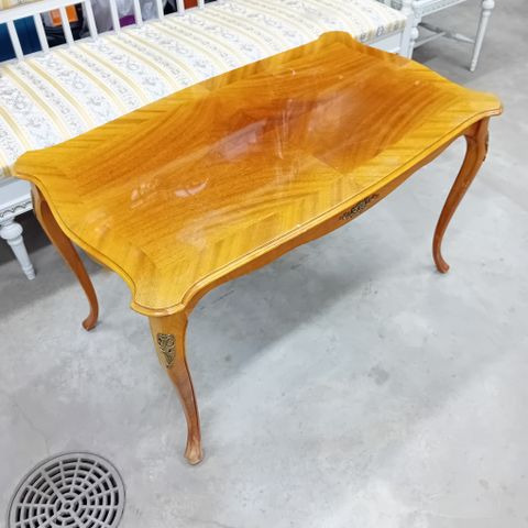 Vanha kaunis sohvapöytä, ruskealla käsittelyllä.