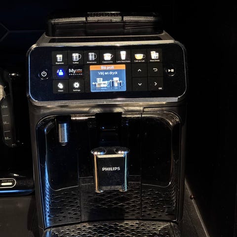 Philips 3200 Series kahvikone, valkoinen väri. Täysin automaattinen kahvilaite, jossa on kosketusnäyttö ja maidonvaahdotin. Laite on suunniteltu kotikäyttöön ja sopii kahvinvalmistukseen eri kahvijuomille, kuten espresso ja cappuccino.
