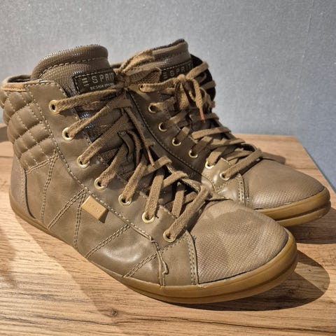 Muutaman talvena ollut muutaman kerran jalassa. Pinta ehjä ja siisti. Nilkan kohdalla ei tukea. Kiinnitys kilkan takaa narulla. Koko 39, väri tumman sininen. Pohja 4 cm pakasu. Pehmeä vuori ja kengän pinta jotain mokan tyyppistä. Pinta ihan vähän kulunut.