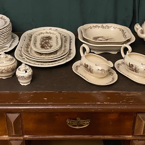 Astiastoa on saatavilla sekä sinisenä että vihreänä ja tämä on vihreä. Astiasto ei kuvissa keinovalossa pääse ihan oikeuksiinsa, väri on luonnossa vielä kauniimpi. Googlettamalla löytyy laadukkaampia kuvia kyseisestä astiastosta.